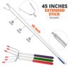 • ADAPTABLE DESIGN: Telescoping marshmallow sticks are perfect for BBQs including smores, marshmallows, hotdogs, sausages even vegetables, or fruits in a bonfire. Extendable up to 45”, these smores sticks provide protected distance from the fire at the same time as you cook.