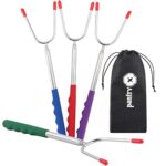 • PREMIUM QUALITY: Heat-treated stainless steel roasting sticks provide strength to avoid bending. Food grade material won’t impact the taste. The heat-resistant nonslip deal with indents on each camping stick give you an extra steady grip.