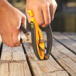 Ideal for sharpening skinning/filet knives, the Jiffy-Pro also includes a scissors sharpener integrated into the maintain. It uses a patented “floating” carbide rod that adjusts to fit the precise bevel of the blades, and it’s been specifically enlarged to accommodate game shears.